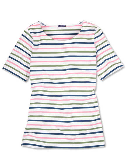 Das gestreifte Shirt hat sich längst als zeitloser Klassiker etabliert, über seine Wurzeln in der bretonischen Seefahrt hinaus. Gefertigt aus festem, griffigem Baumwoll-Jersey, bewahrt es stets seine Form. Das Marinière ist die perfekte Basis für einen legeren Freizeit-Look. Verleiht, unter einem Blazer oder Sakko getragen, auch einem gepflegten Auftritt eine Note maritimer Lässigkeit. Während Saint James als Hüter des authentischen Originals gilt, finden Sie bei uns auch moderne, britische Interpretationen von Barbour und Charles Robertson, die diesen Klassiker auf neue Weise zelebrieren.
