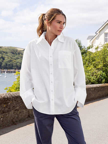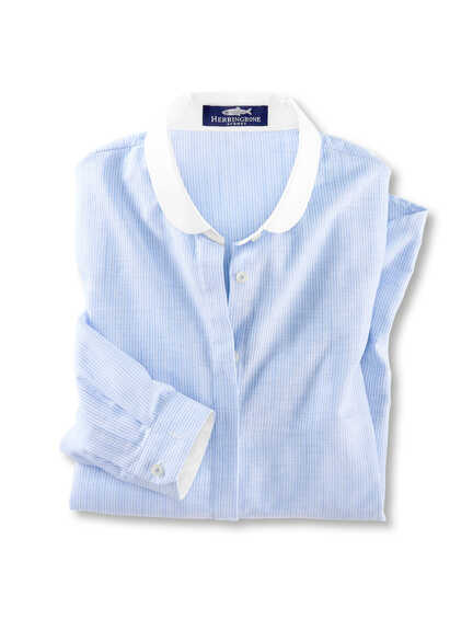 Die wahre Stärke der Hemdbluse liegt in ihrem Facettenreichtum. Das Fundament der gepflegten Garderobe bildet die Bluse in makellosem Weiß. Alternativ setzen feine Streifenmuster wie das dezente Mille-Rayé-Dessin klassische Akzente, die von subtiler Raffinesse zeugen. Zeitlose Farben wie Bleu, Creme und Navy unterstreichen den edlen Charakter und ermöglichen vielseitige Kombinationen. Eine besonders feminine Ausstrahlung verleiht der Peter-Pan-Kragen. Mit seiner sanft abgerundeten Form setzt er einen charmanten, leicht nostalgischen Akzent und stellt eine wunderbare Alternative zum klassischen Kentkragen dar. Er bricht die formelle Strenge auf subtile Weise und verleiht Ihrem Outfit eine individuelle, weichere Note.