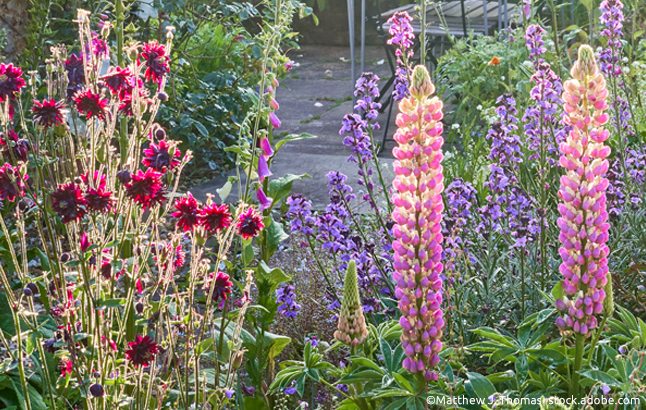 Das wichtigste Element der Gartenplanung ist natürlich die Auswahl der Pflanzen. Im Cottage Garden unterscheiden wir zwischen Leitpflanzen, die Struktur geben und für Höhe und Volumen sorgen, und den Füllpflanzen mit Dauerblühern, die dem Cottage-Garten mit ihren Farben einen individuellen Stil verleihen.