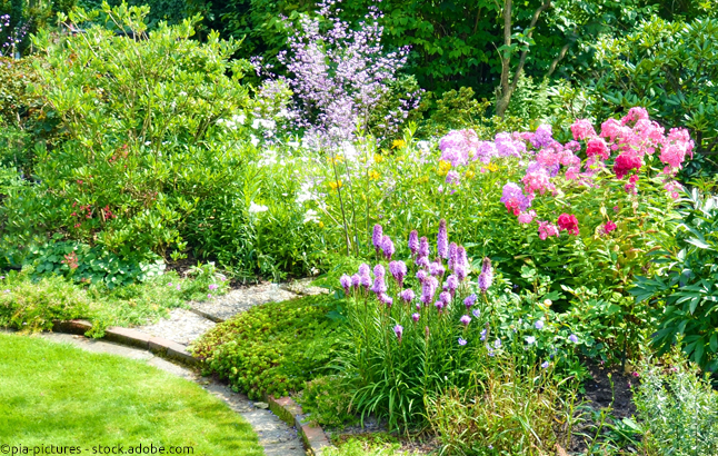 Zu dichtes Zusammenpflanzen erzeugt zwar den gewünschten Dschungel-Effekt und unterdrückt Unkraut, fördert aber Pilzkrankheiten und Konkurrenz um Licht, Wasser und Nährstoffe. Aggressive Leitpflanzen wie Fingerhut können schwächere Stauden verdrängen.