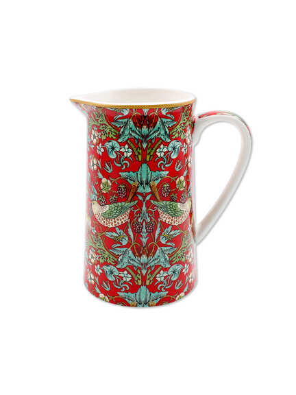William Morris ließ sich stark von der Natur in seiner Umgebung inspirieren. Besonders die Farben und Formen der Pflanzen in seinem Garten in Kelmscott Manor prägten seine Designs. Ein Beispiel dafür ist das beliebte Motiv des "Strawberry Thief" (Erdbeerdieb). Morris beobachtete oft durch sein Küchenfenster, wie Drosseln Erdbeeren aus seinem Garten stahlen – eine Szene, die er in einem seiner berühmtesten Muster festhielt. Dieses Motiv fand seinen Weg in Textiltapeten und Polsterstoffe von Morris & Co. und bleibt bis heute eines der bekanntesten Designs der William Morris Gallery.